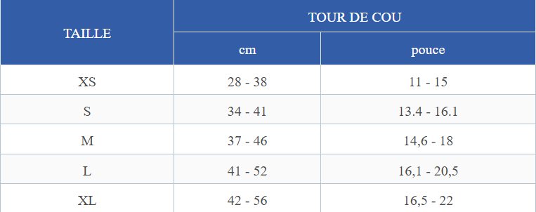 Mesurez le tour de cou de votre chien et consultez notre guide des tailles :