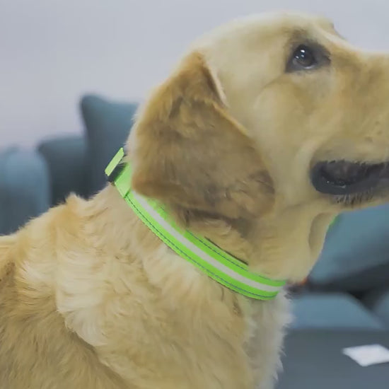 Ajustez le collier au cou de votre chien, appuyez sur le bouton pour choisir votre mode d'éclairage préféré, et partez en promenade l'esprit tranquille. Rechargez simplement via USB quand nécessaire.
