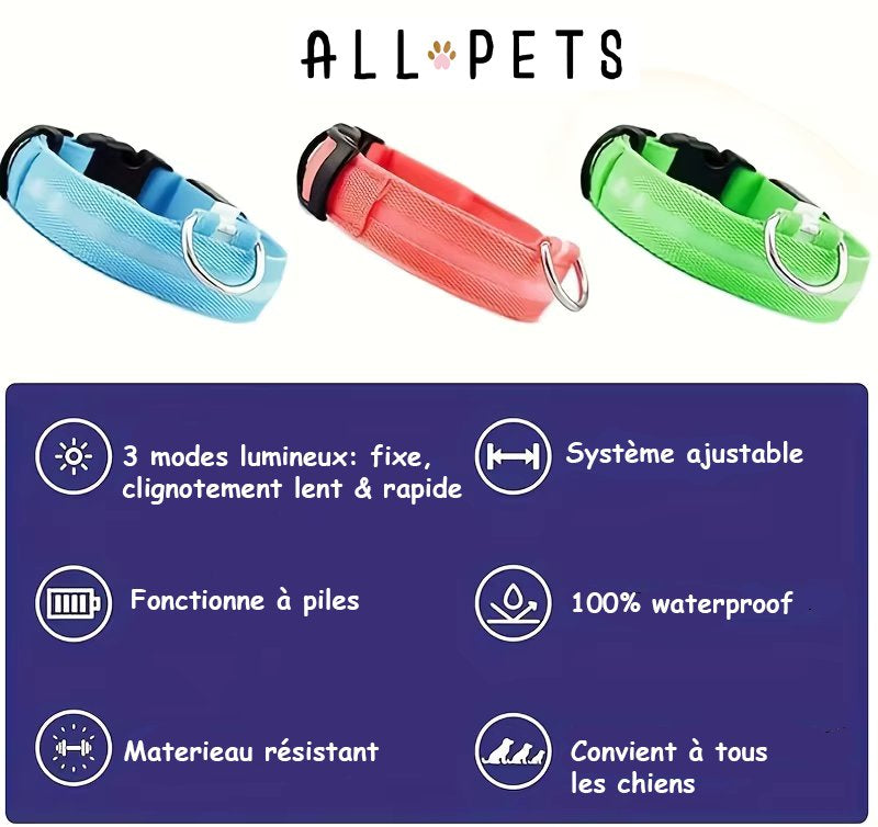Les ingénieurs ALL PETS ont conçu ce collier pour assurer une visibilité constante. Il permet de garder votre animal repérable même dans l’obscurité.